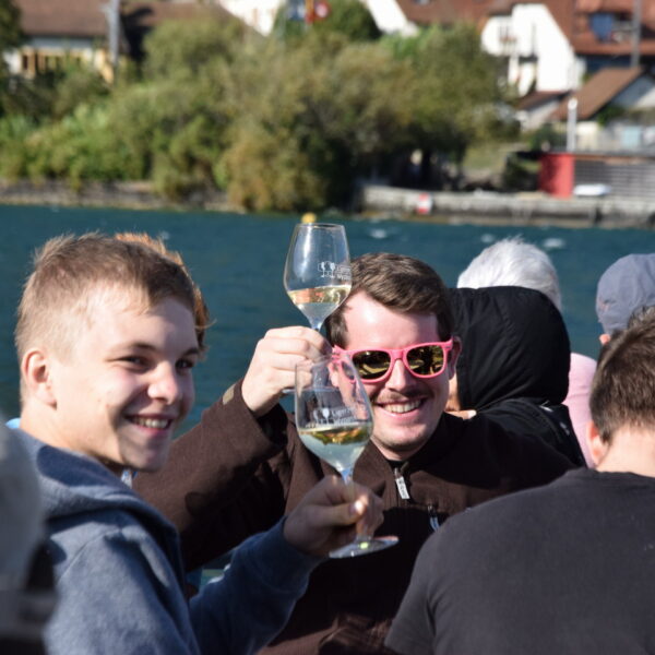 Programm Samstag: Mittagessen, Trottifahrt nach Ligerz, Schifffahrt nach Erlach, Städlibesichtigung, Nachtessen, Unterhaltung & Fest