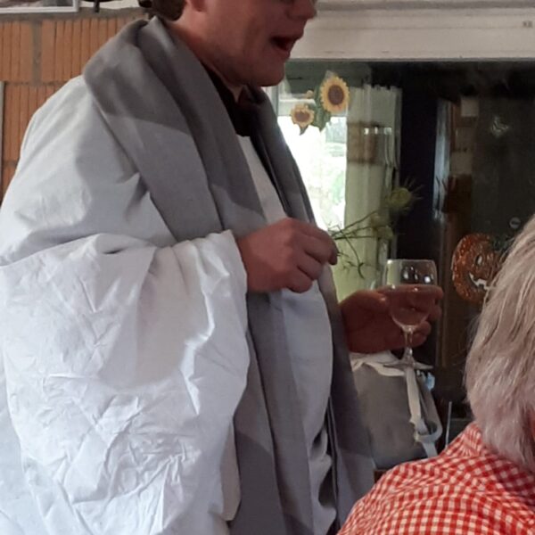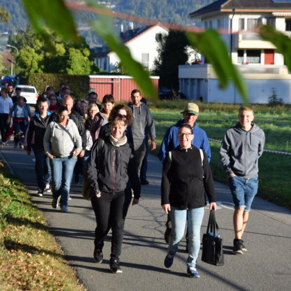 Programm Sonntag: Nacht in Zivilschutzkeller, Brunch, Segen von Luki, Apéro, Ständli, Umzug durch Städli, Essen, Wein & Fest